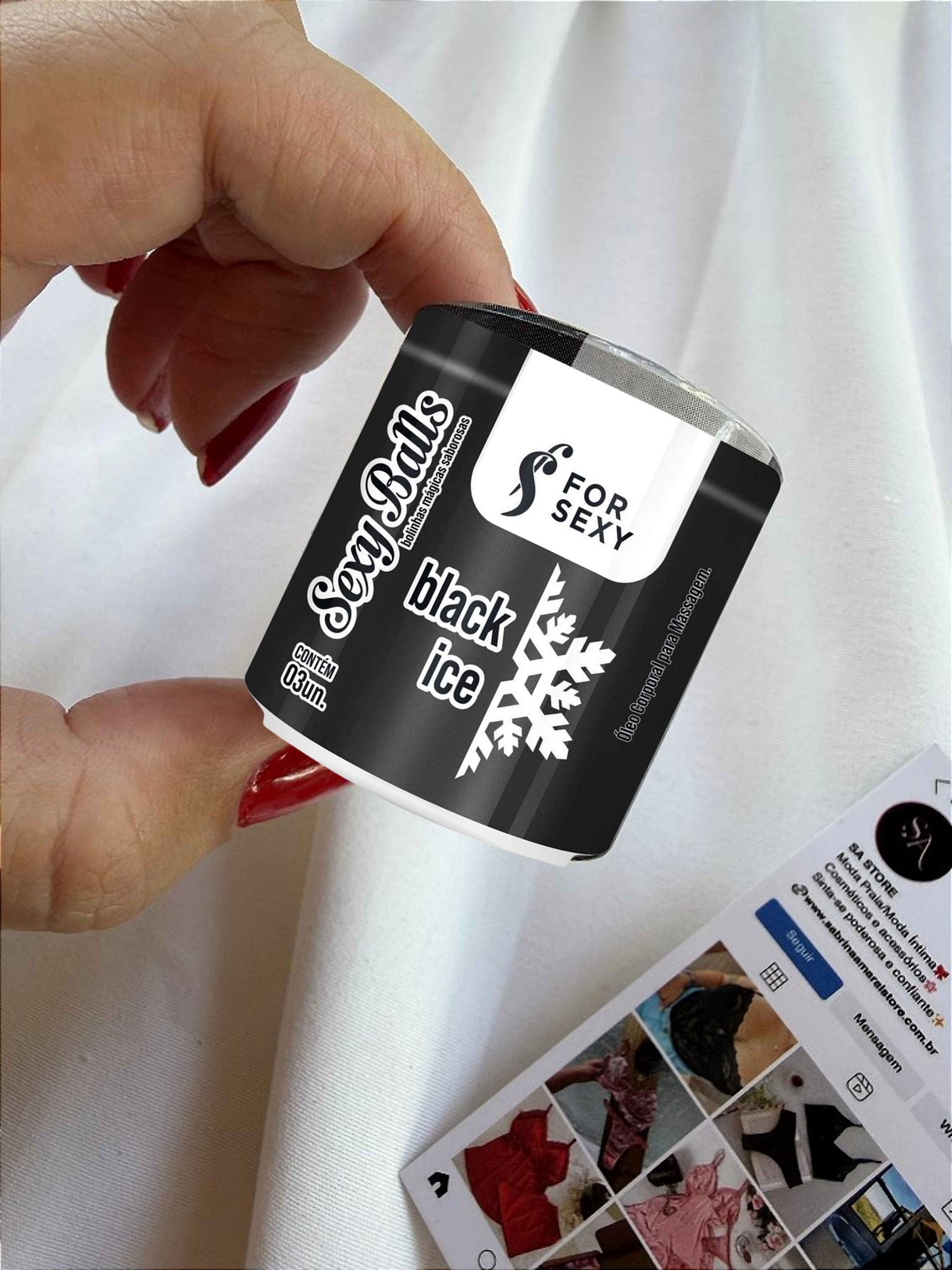 A "Black Ice" da linha Sexy Balls beijáveis em bolinha da ForSexy é feita em cápsulas de óleos com extratos que excitam, umidificam e esfriam