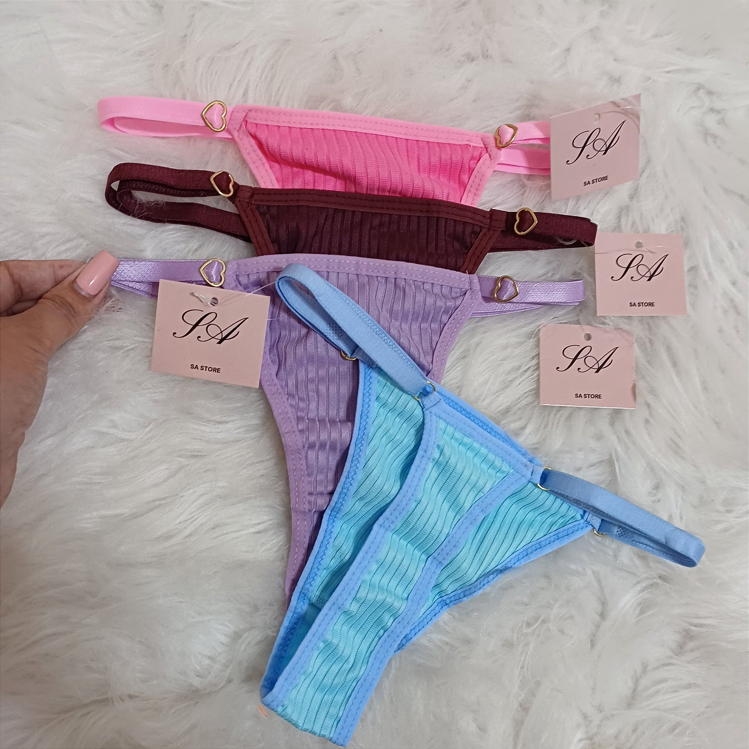 Modelo: Calcinha Fio, Possui Regulagem, Tecido Canelado;