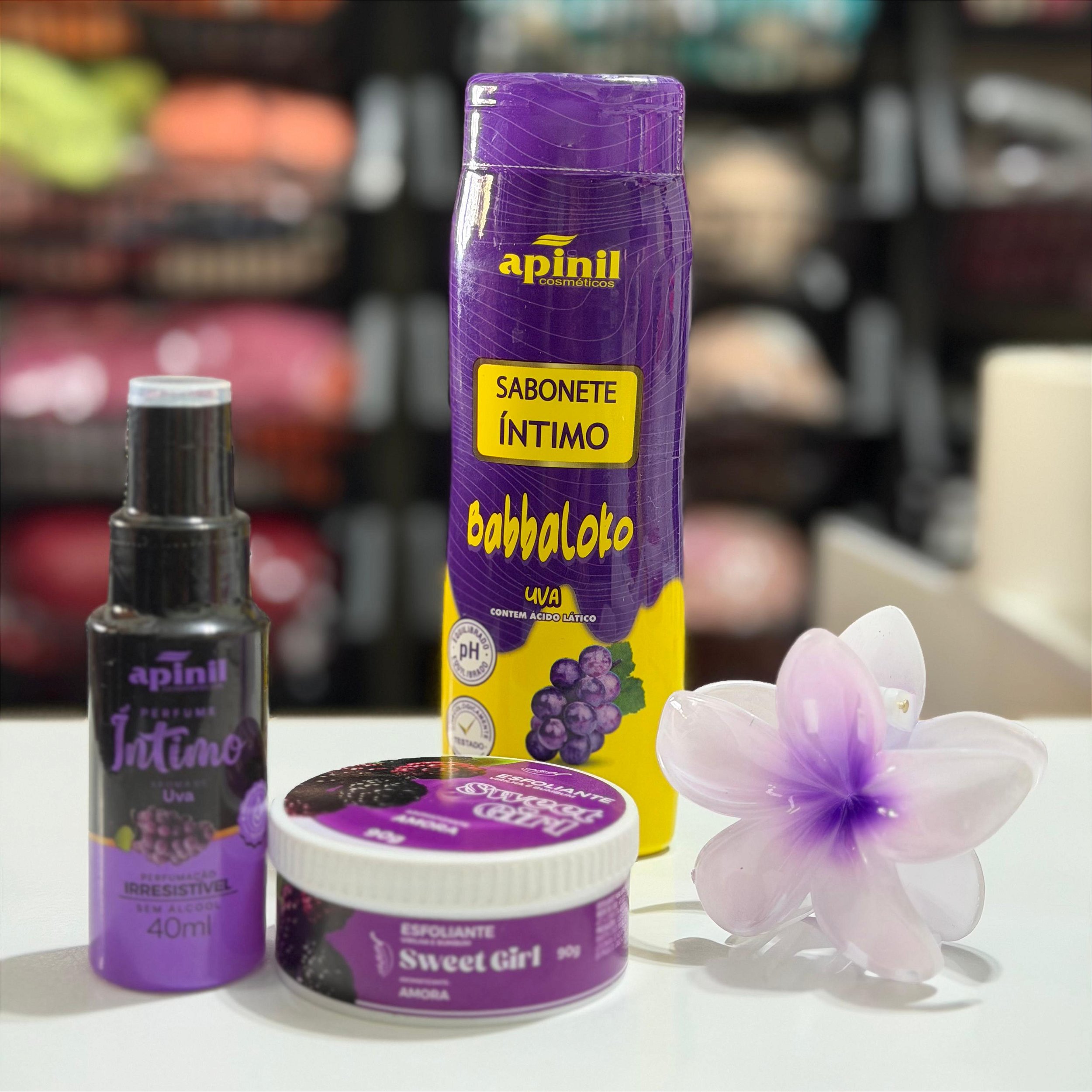 Kit Ritual do amor próprio Sabonete íntimo+ Esfoliante Virilha e Bumbum+Perfume íntimo+Presilha Flor