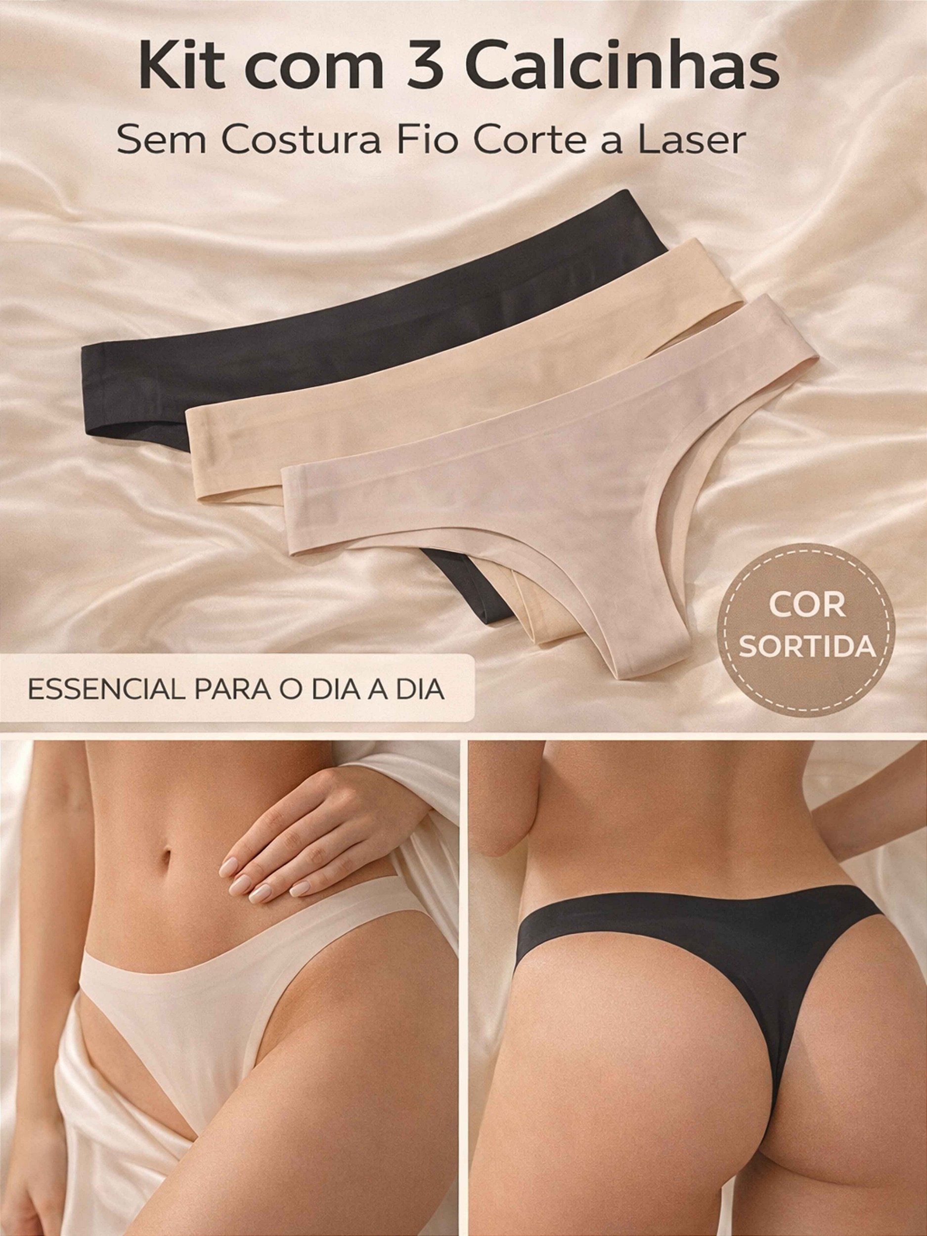 Kit 3 Calcinha Tanga Sem Costura Fio Dental Corte Laser