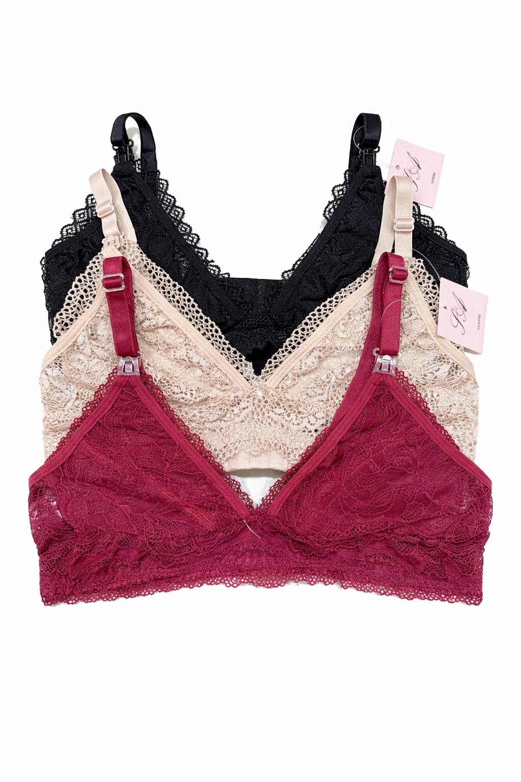 Confeccionado em renda macia e delicada, proporciona um toque suave na pele, evitando desconfortos. Seu modelo conta com abertura frontal prática, facilitando a amamentação no dia a dia, além de garantir mais segurança e comodidade.